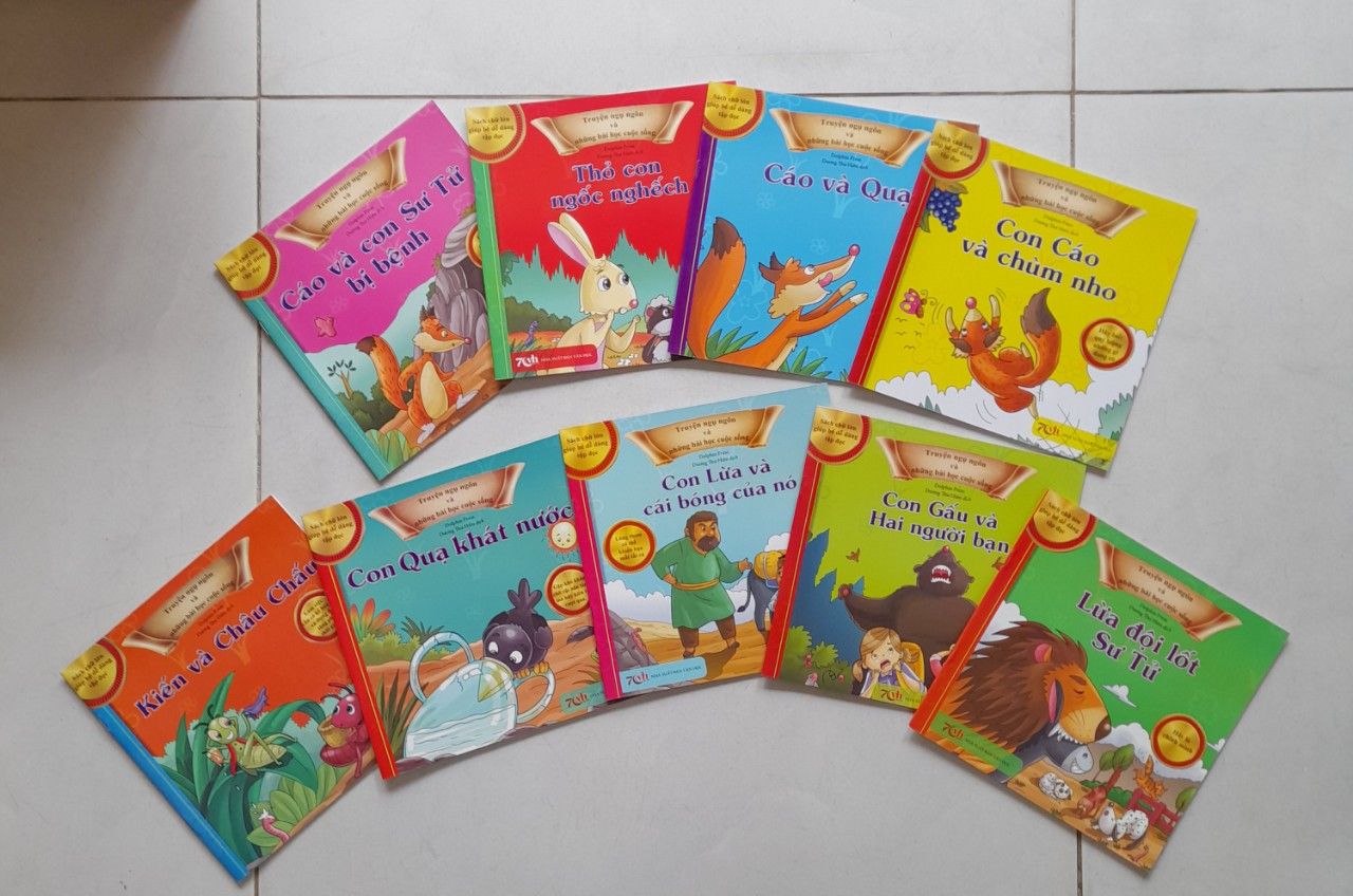 Danh sách bộ Truyện Ngụ Ngôn Và Những Bài Học Cuộc Sống: Cáo và quạ, Lừa đội lốt sư tử, Con gấu và hai người bạn, Thỏ con ngốc nghếch, Con lừa và cái bóng của nó, Cáo và con sư tử bị bệnh, Con quạ khát nước, Kiến và châu chấu, Con cáo và chùm nho.